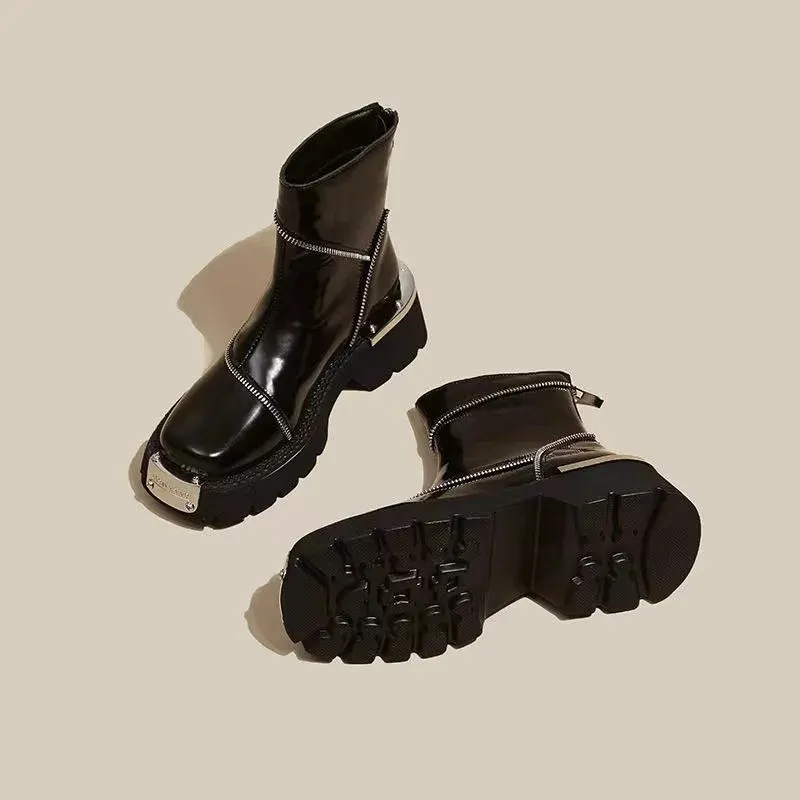 الصفحة الرئيسية اثاث حذاء نسائي أسود بنعل سميك